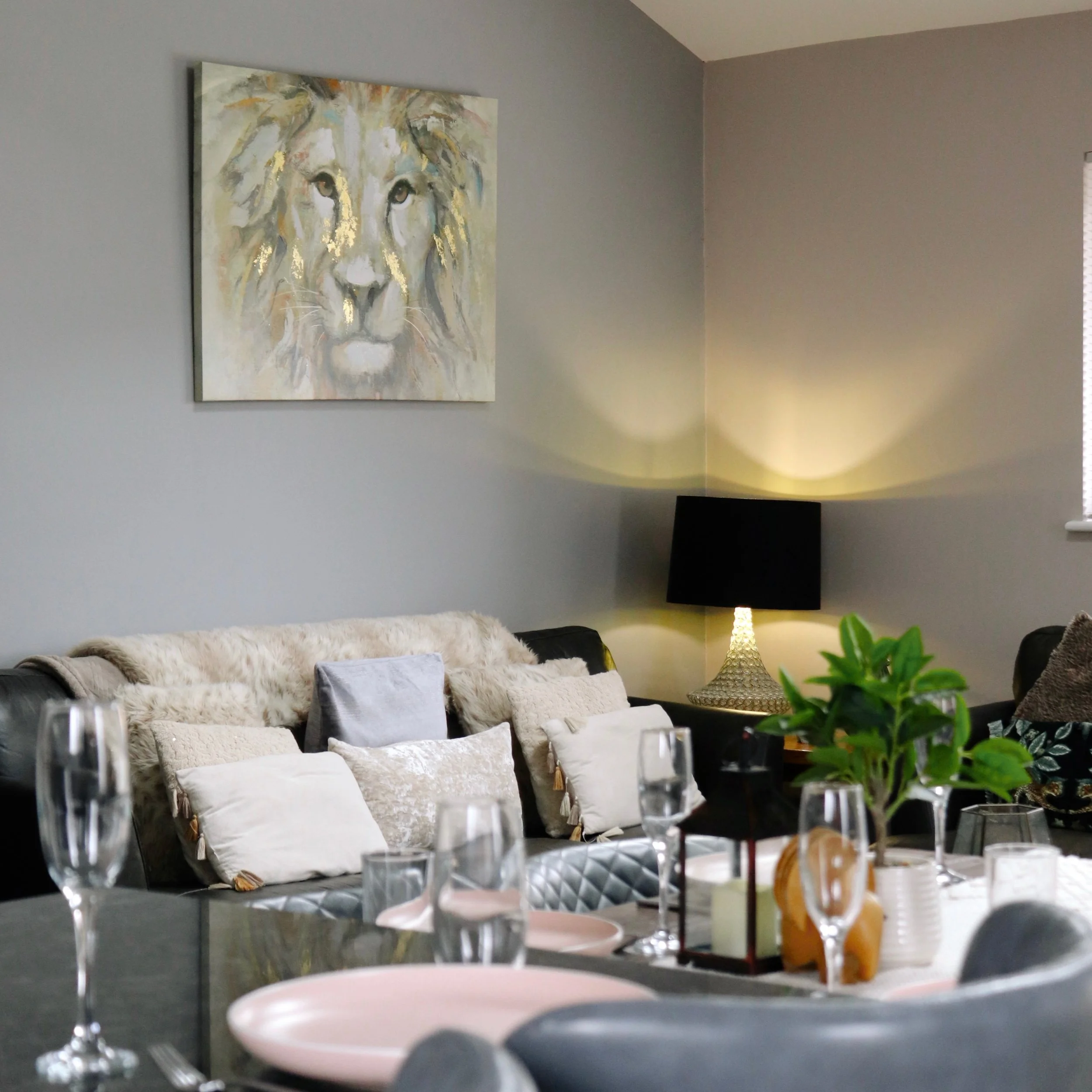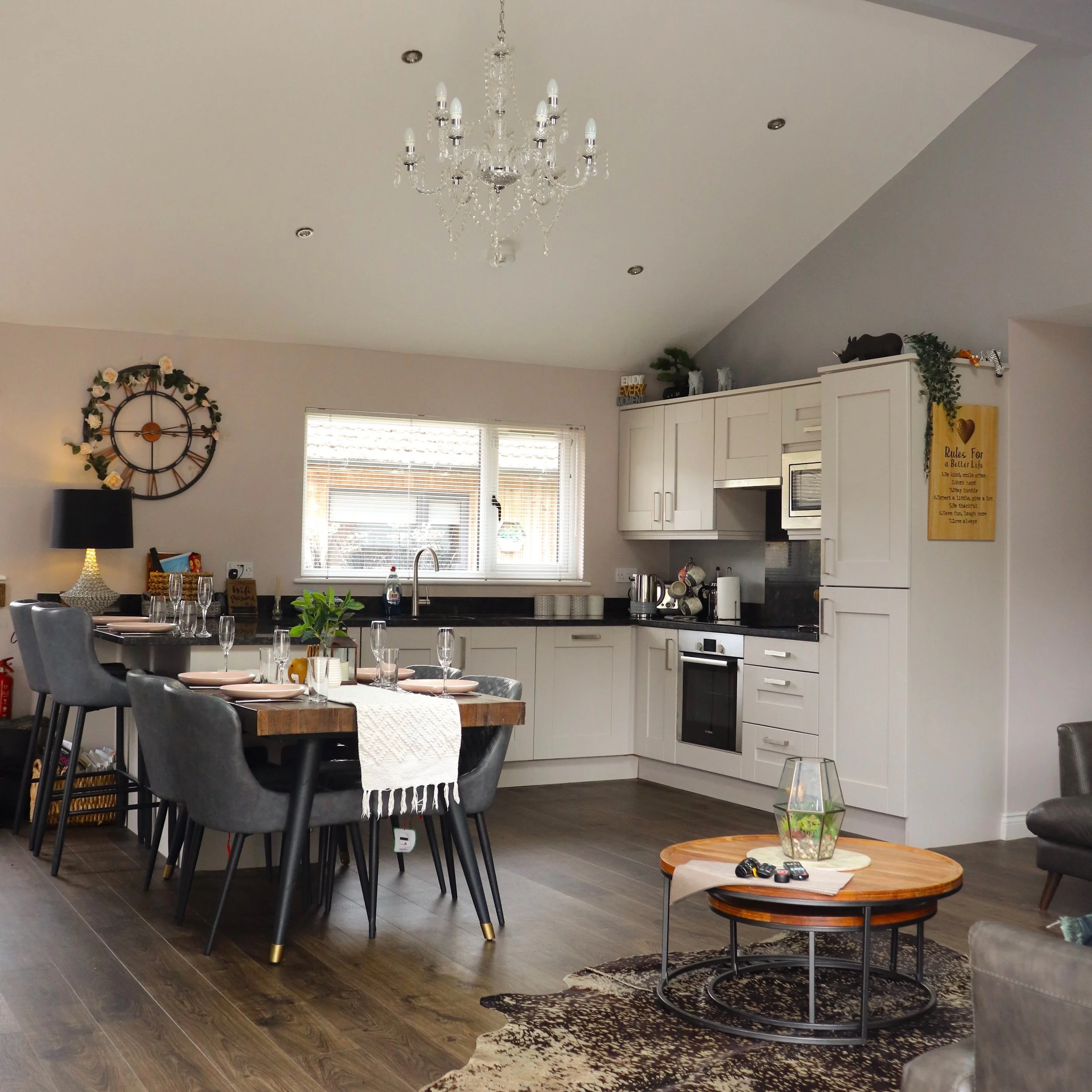 Open-Plan Living – Large lounge with smart TV & fireplace
